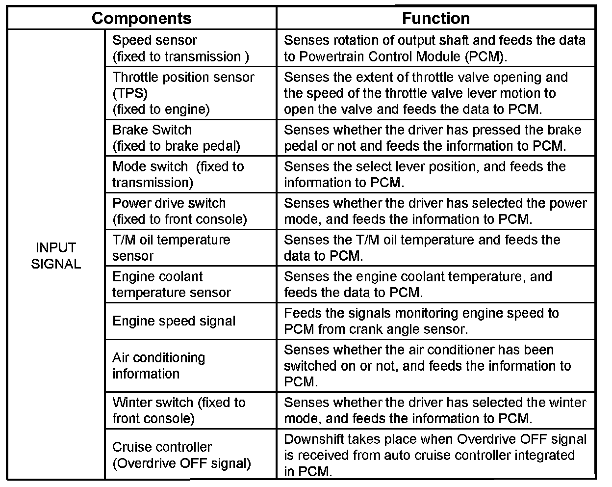 When uphill condition are recognized the 2-3 and 3-4 shift and TCC apply are down only when the engine torque is sufficient in order to avoid shift hunting.