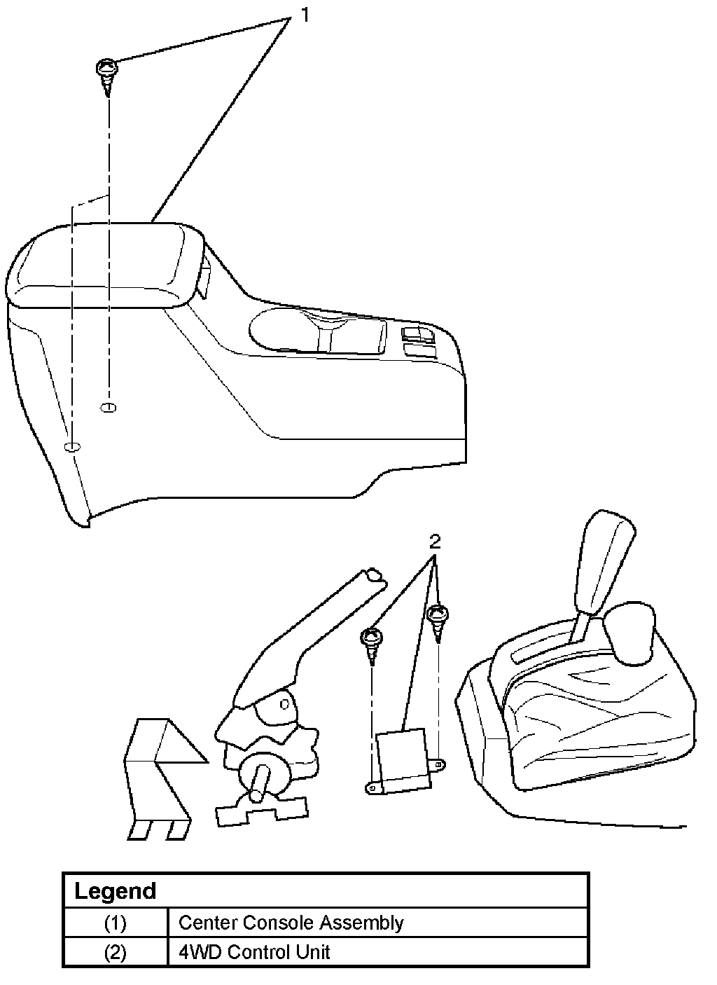 2. Remove two screws and harness connector (1) from 4WD control unit.