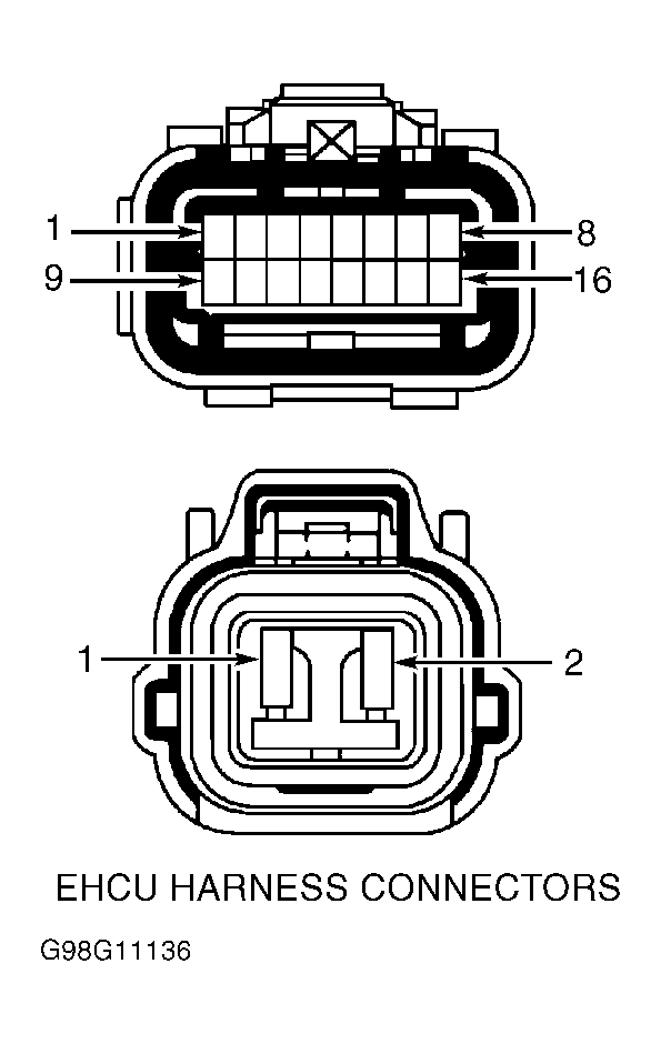 Check system operation before and after performing any of the following diagnostic procedures, and after completing any repairs. To aid in wire color and terminal identification and/or component location, see WIRING DIAGRAMS . Refer to illustration for EHCU harness connector terminal identification. See Figure.