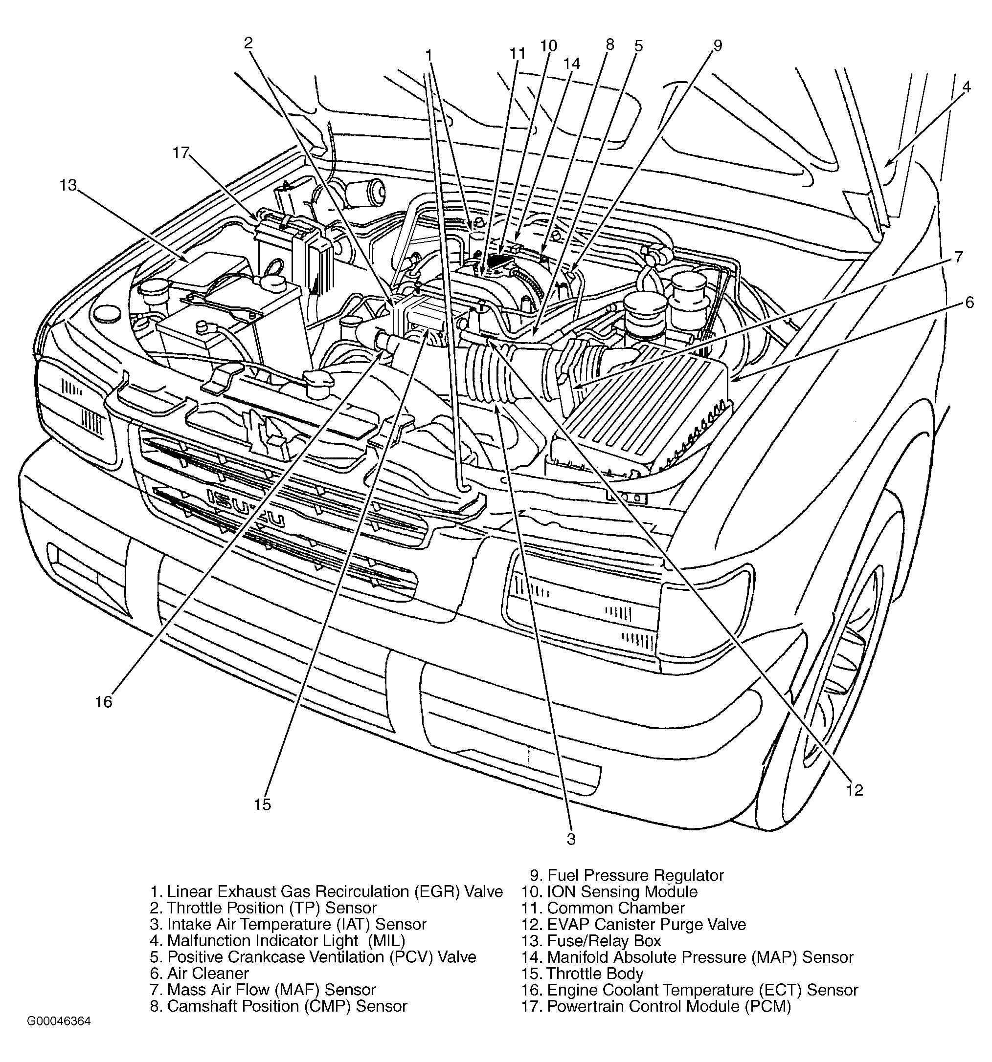 Fig 3: Component Locations (Trooper 3.5L)