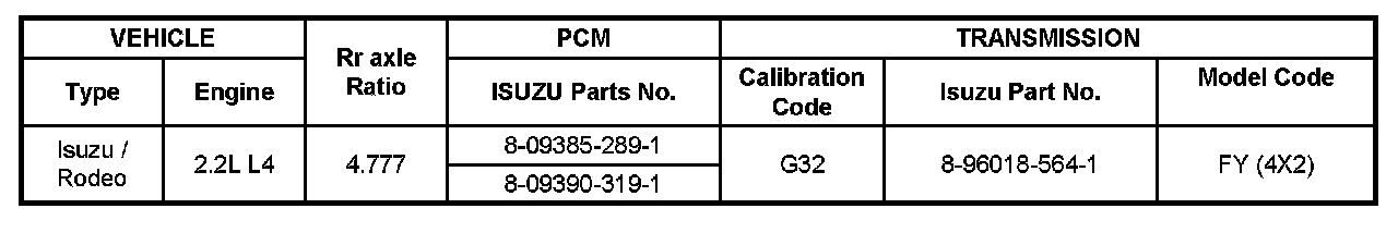 Home >> Isuzu >> 2002 >> Rodeo S 2WD L4-2.2L >> Repair and Diagnosis >> Powertrain Management >> Transmission Control Systems >> Application and ID