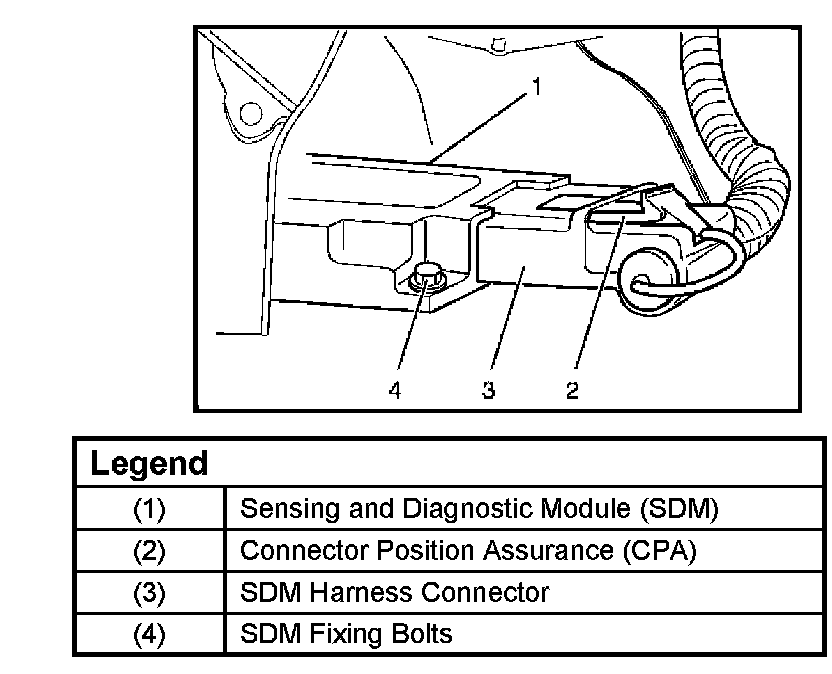 CAUTION: should be used to ensure proper location of the SDM. The keying of the SDM to its location and wiring harness connectors should never be modified in the field.