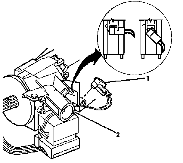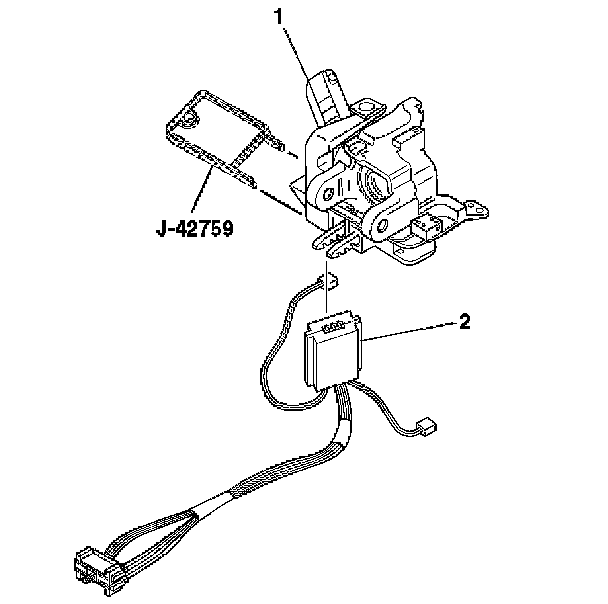 8. Insert J 42759 into the ignition lock cylinder case (1) and slide the ignition switch (2) out.