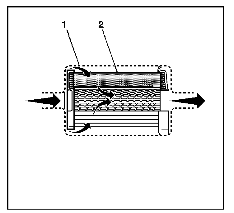 The fuel filter is located on the fuel feed pipe, between the fuel pump and the fuel injectors. The paper filter element (2) traps particles in the fuel that may damage the fuel injection system. The filter housing (1) is made to withstand maximum fuel system pressure, exposure to fuel additives, and changes in temperature.