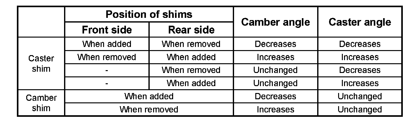 Note: Overall thickness of caster shim and camber shim should be 10.8 mm (0.425 inch) or less.