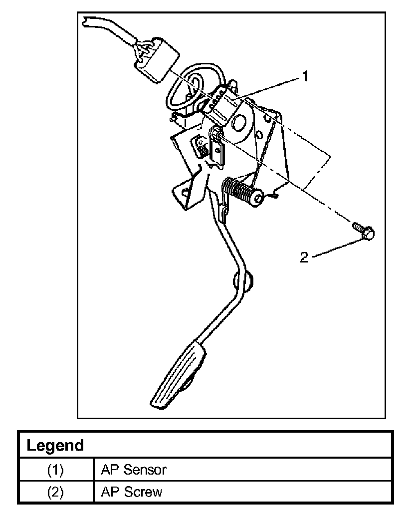 Accelerator Position Sensor ReplacementCAUTION: Remove the Accelerator (A) pedal assembly as a unit to have it serviced. Do not remove the Accelerator Position (AP) sensor on the A pedal. If the AP sensor is removed for emergency cause, refer to following items as necessary.