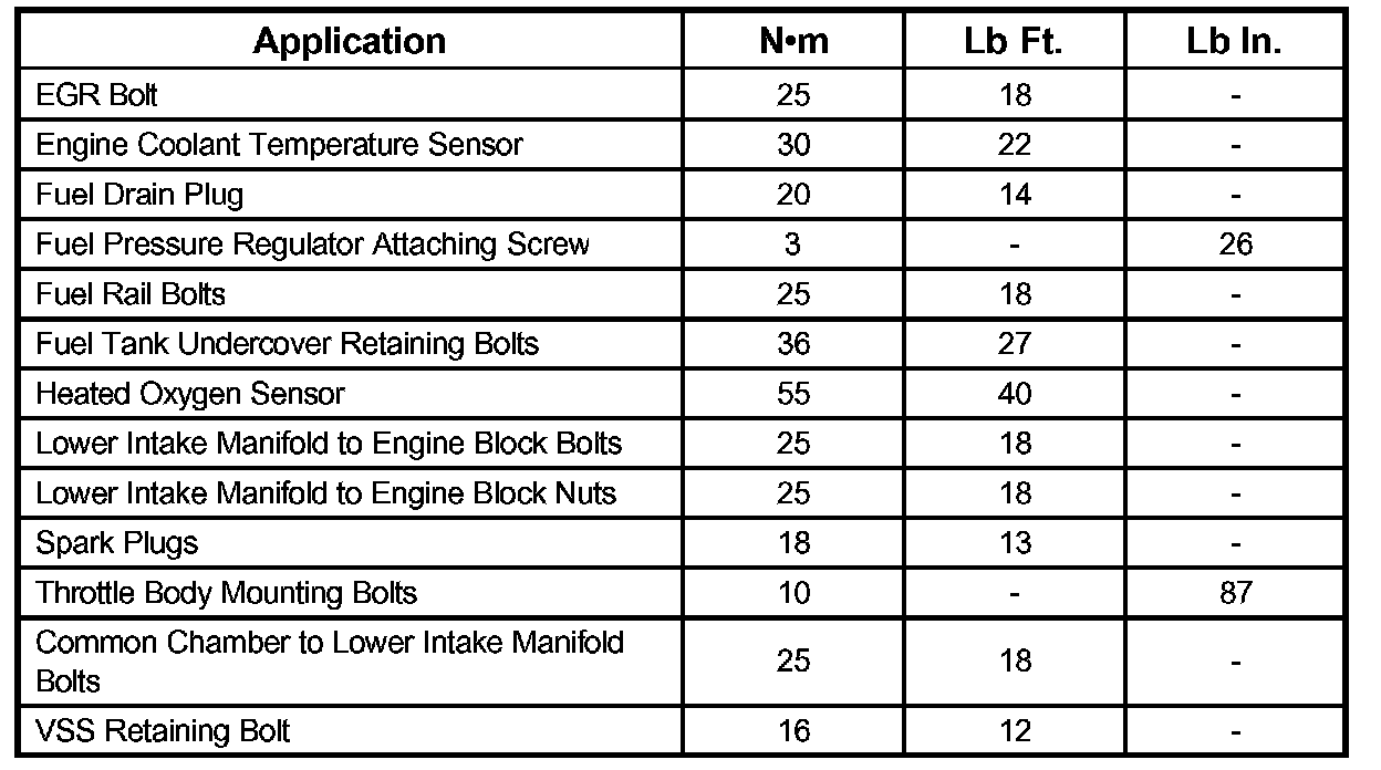 Tightening Specifications: