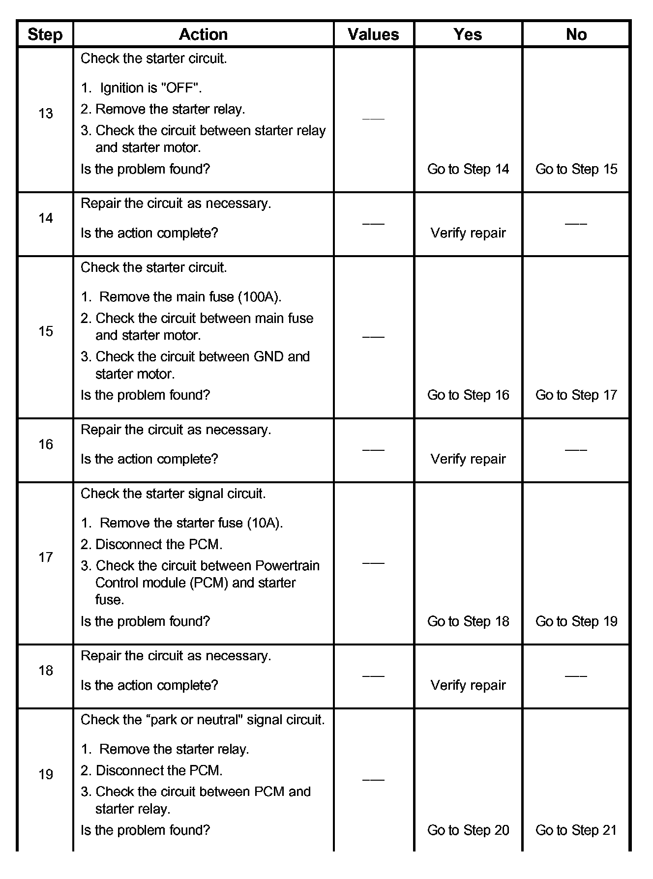 Starter Control System Check