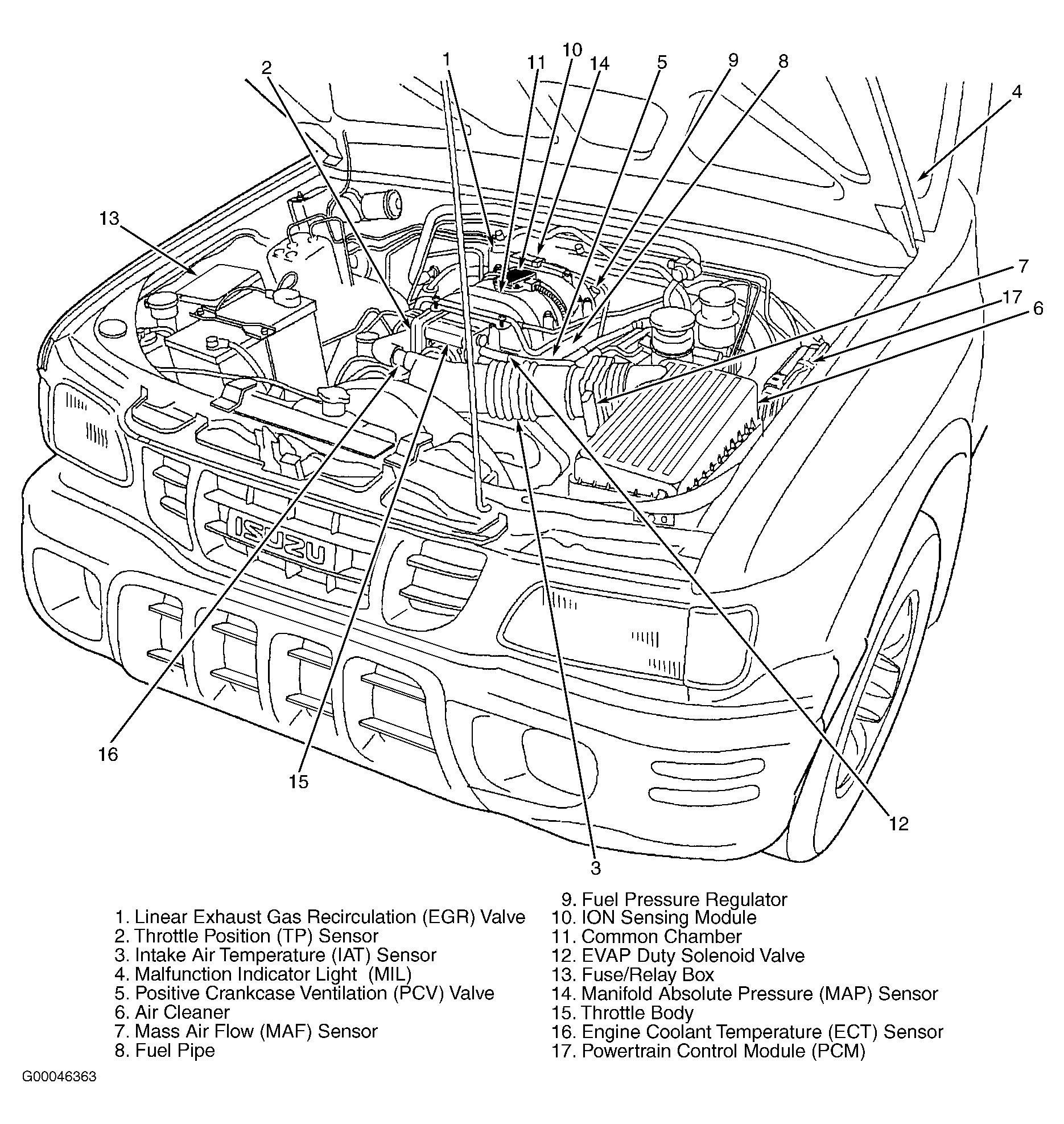 Fig 1: Component Locations (Axiom 3.5L, Rodeo 3.2L & Rodeo Sport 3.2L)