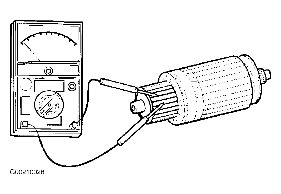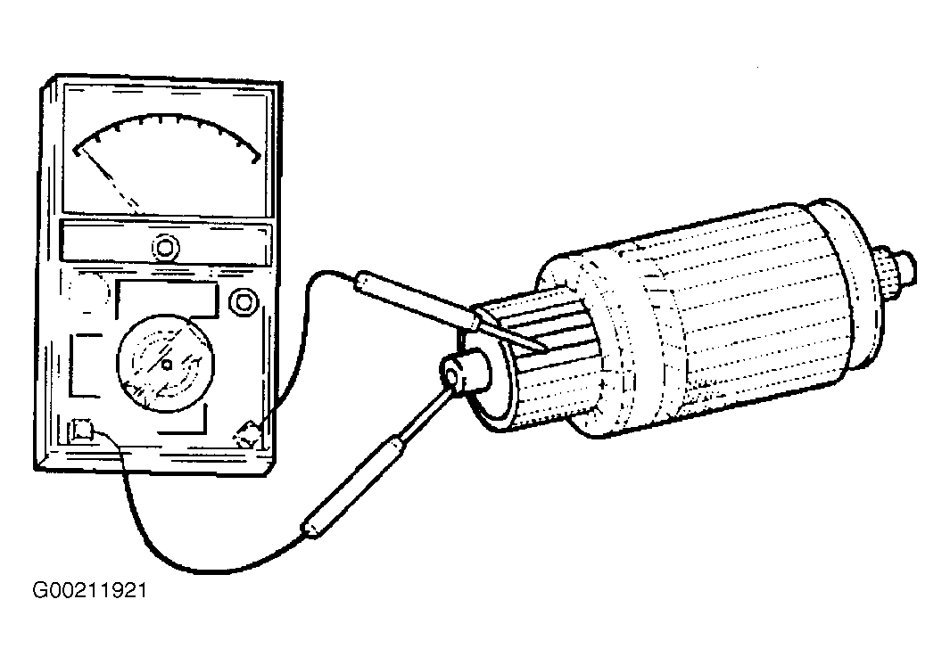 3. Check for continuity between commutator and shaft. Also, check for continuity between commutator and armature core, armature core and shaft. Replace commutator if there is continuity. See Fig 3. See STARTER SPECIFICATIONS .