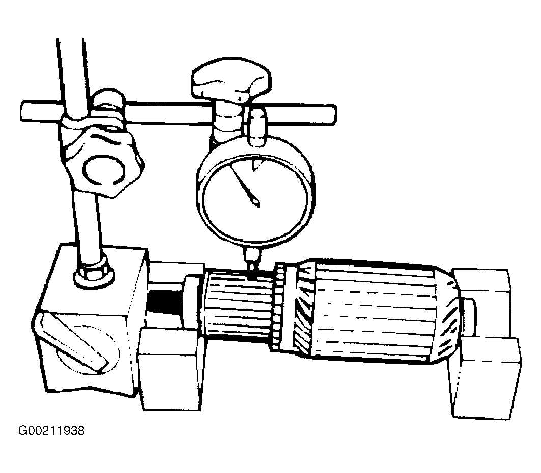 4. Measure runout of the commutator with a dial gauge. SeeFig 4. Repair or replace, if it exceeds the limit. See STARTER SPECIFICATIONS .