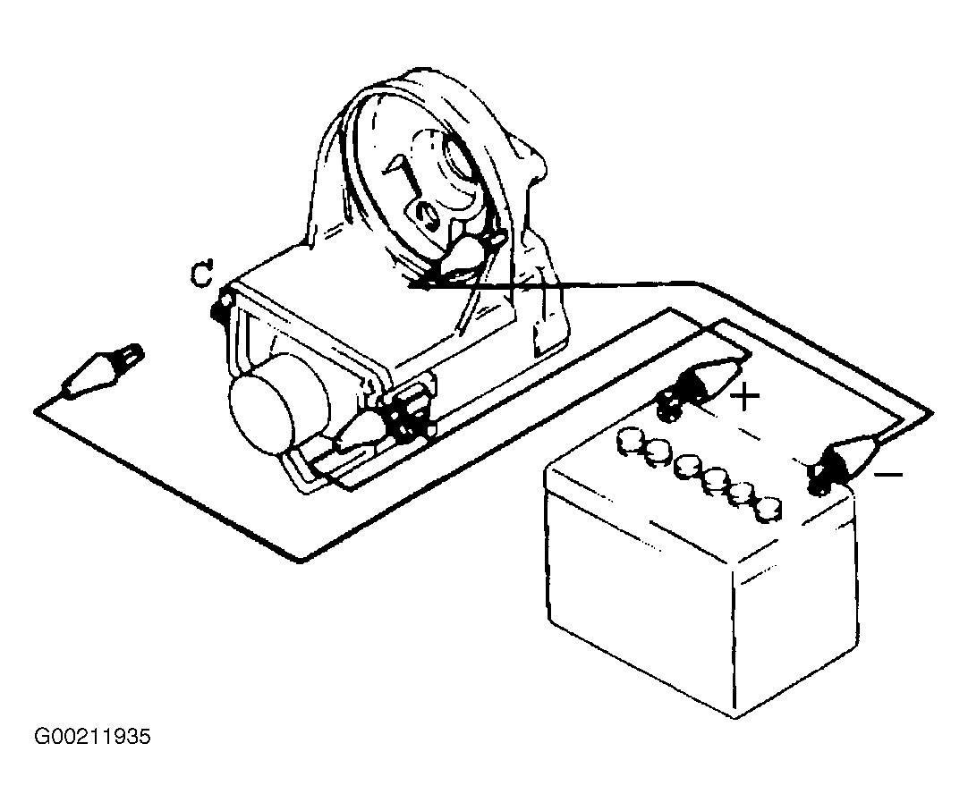 Observe that the pinion stays when the lead wire is disconnected from terminal "C". See