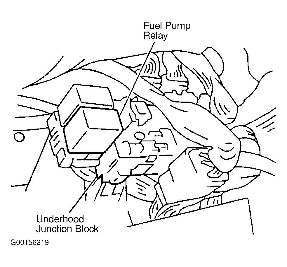 2. Remove fuel pump relay from underhood junction block. See Fig 1 .