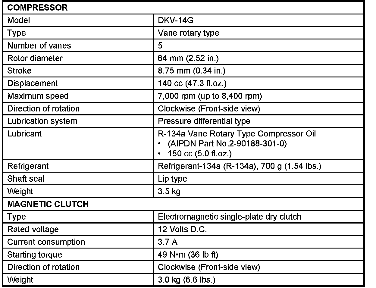 Compressor HVAC: Specifications