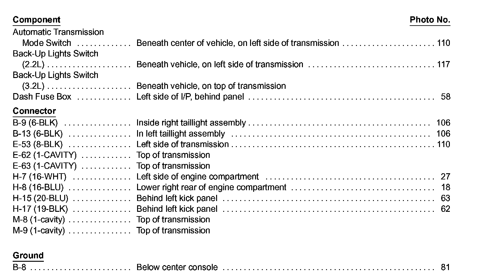Back Up Lights - Automatic Transmission Index Image 112-3: