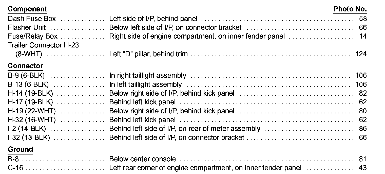 Park, Tail, And License Lights Index Image 110-3: