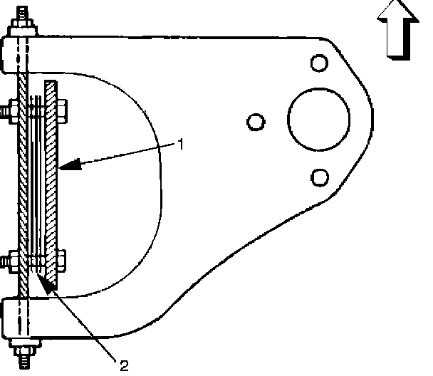 The camber angle can be adjusted by means of the camber shims (2) installed in position between the chassis frame (1) and fulcrum pins