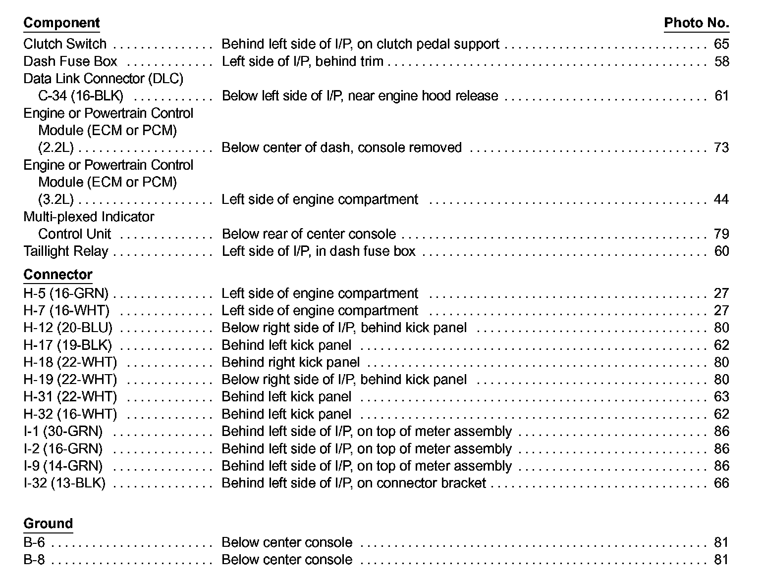 Component Location Index photographs can be found at Diagnosis and Repair/Locations/Components.