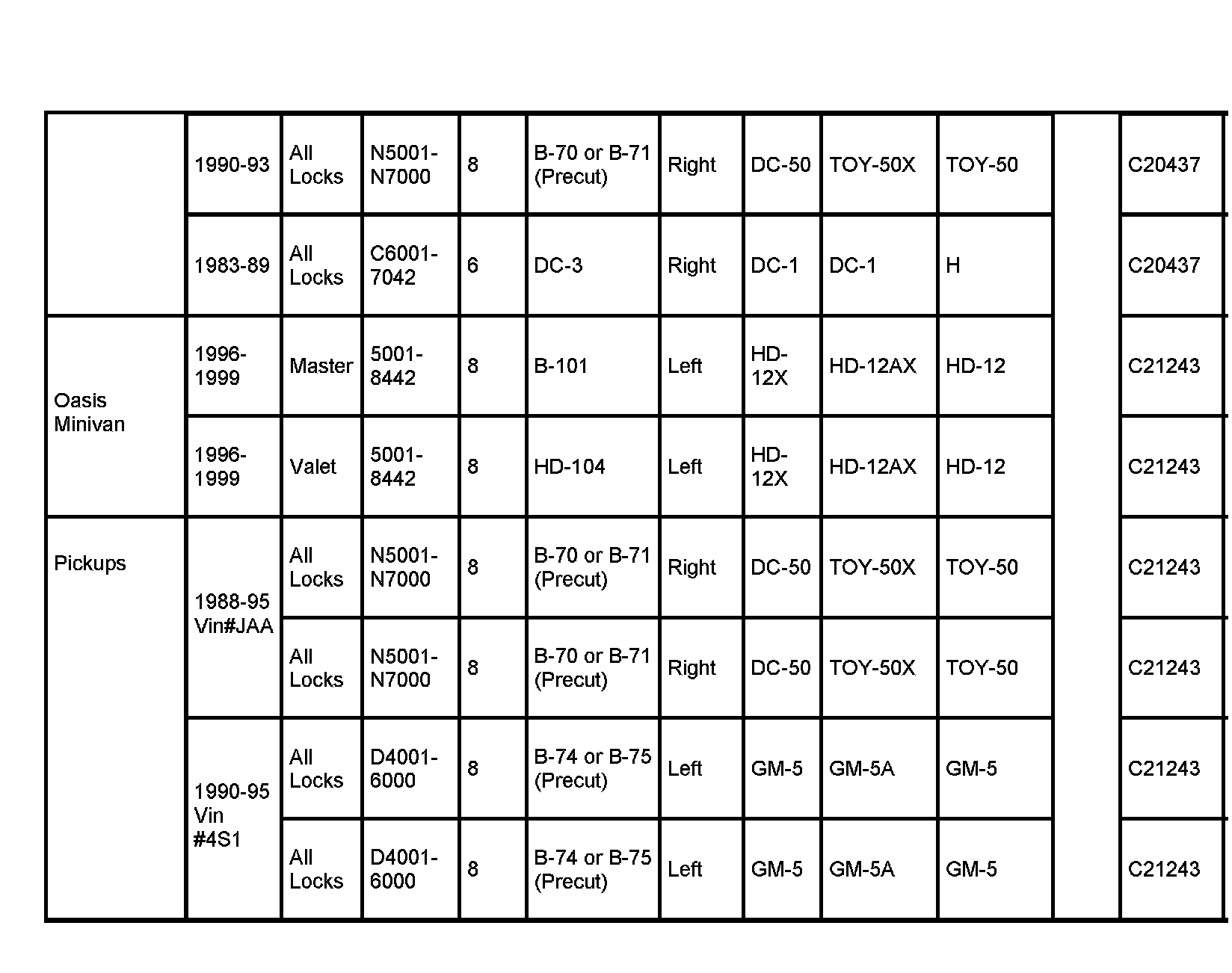 TSB SBO3-14-S001Curtis Key Code Cutter and Application Listing