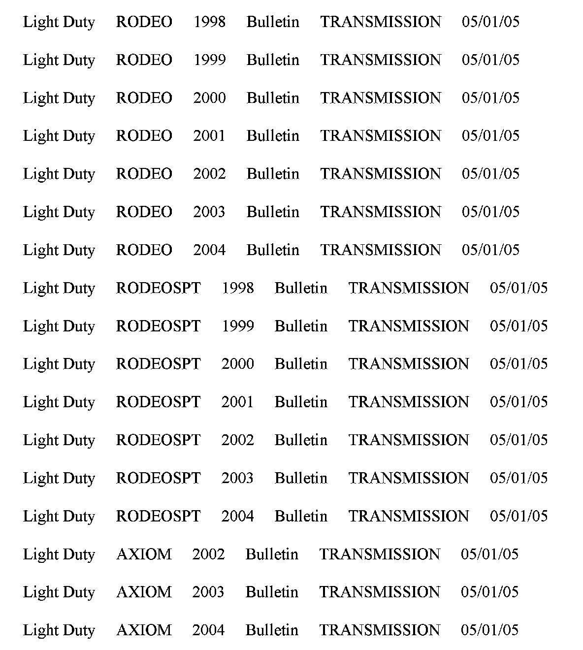 1998-2004 Isuzu Rodeo (UE) and Rodeo Sport (UA)