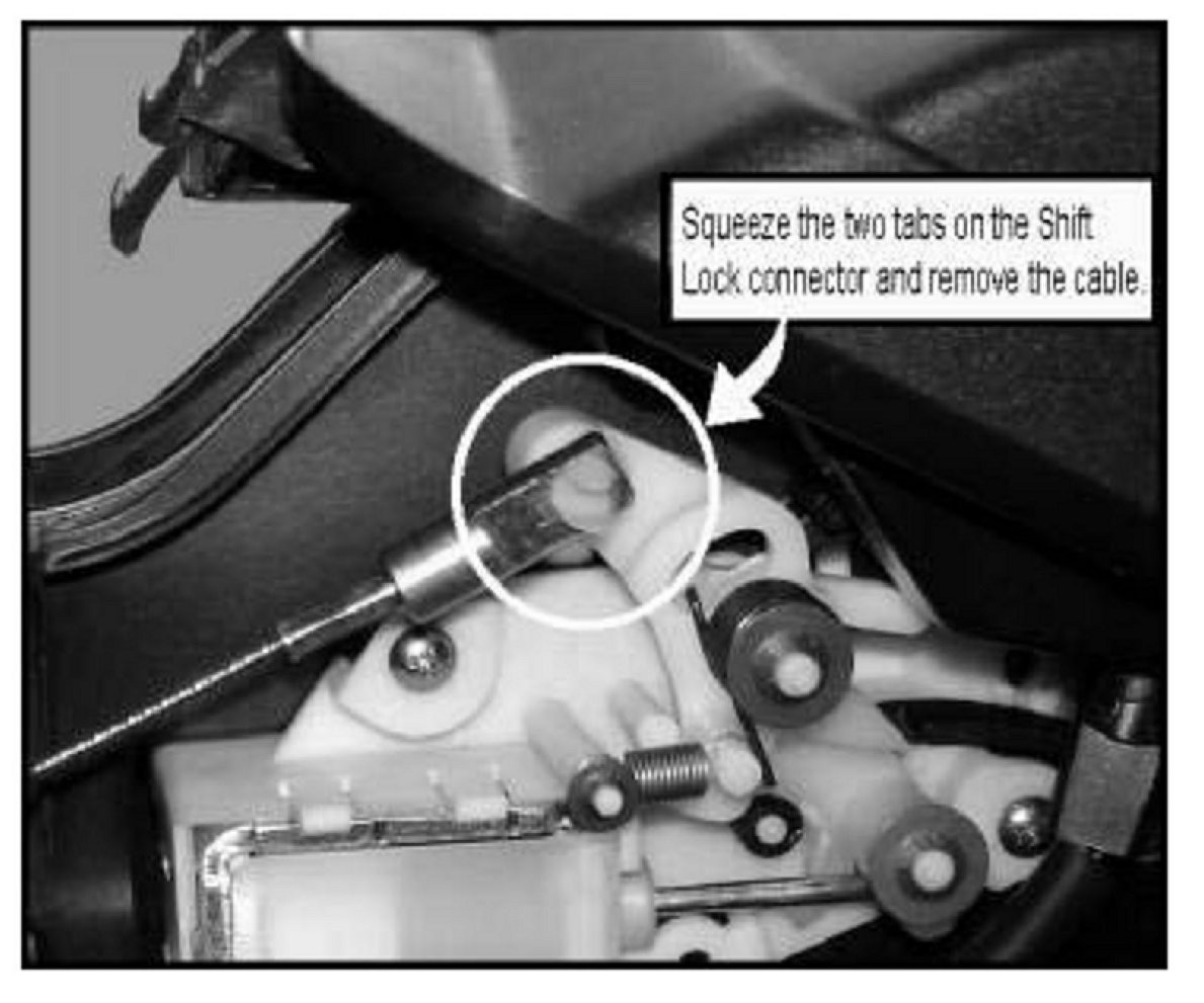 2. Set parking brake, move Selector Lever to lowest gear, and remove the Shift Lock Cable.