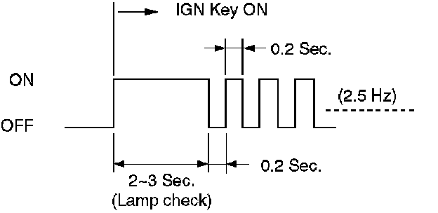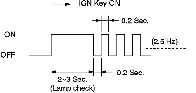 2. Indicator is flashing and the flash is 0.2 seconds ON and 0.2 seconds OFF always when ignition is on (engine cranked or not). This means that there is a malfunction. GO TO DIAGNOSTIC CHECK.