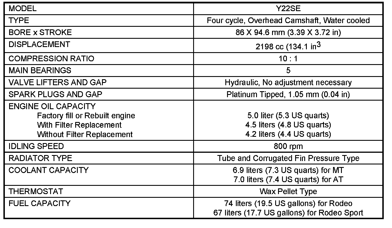 Home >> Isuzu >> 2003 >> Rodeo 2WD L4-2.2L >> Repair and Diagnosis >> Specifications >> Mechanical Specifications >> Engine >> Cylinder Block Assembly >> System Specifications