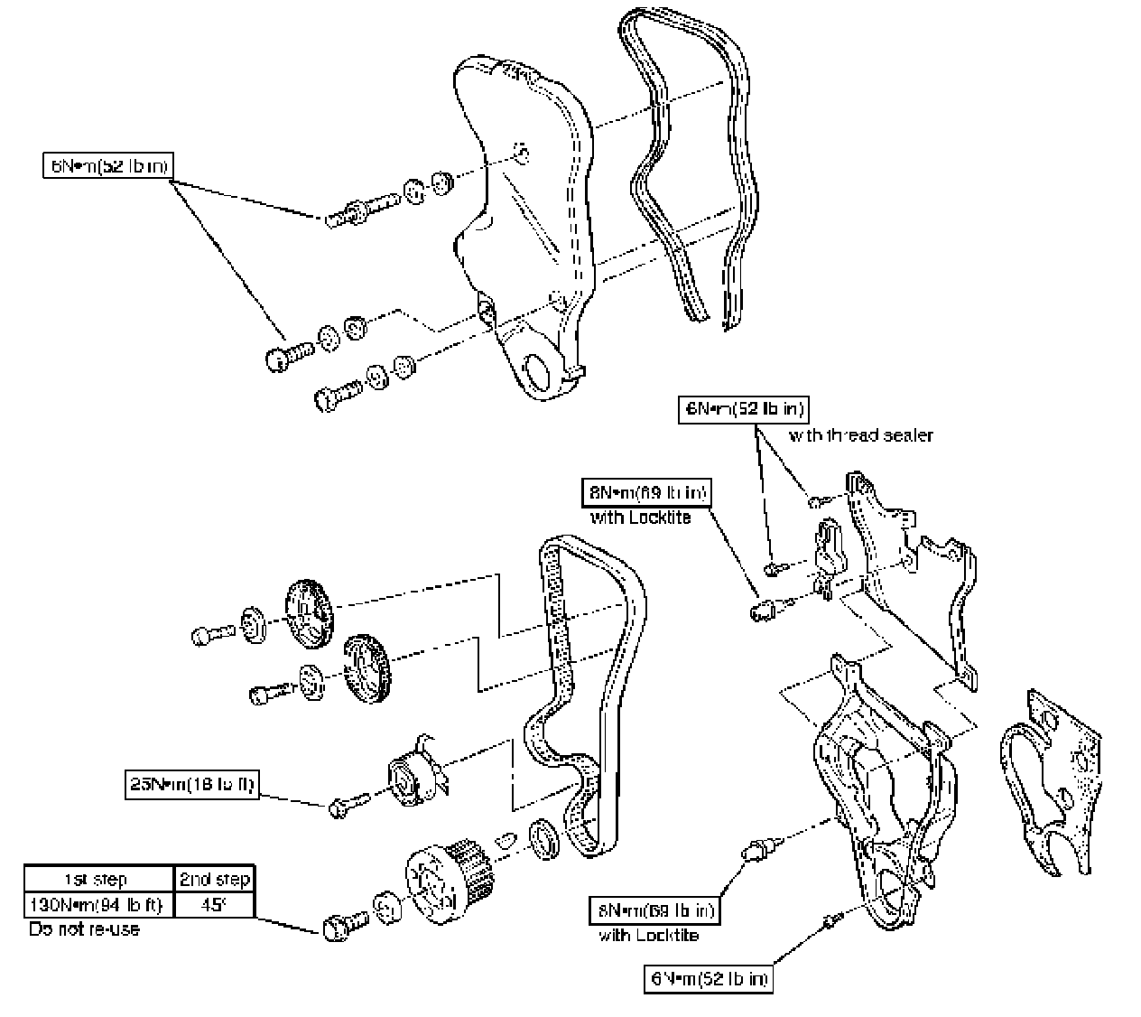Timing Gear Crankshaft (Center Bolt), Timing Belt Cover Front, Timing Belt Cover Rear, Timing Belt Tensioner, Camshaft Angle Sensor