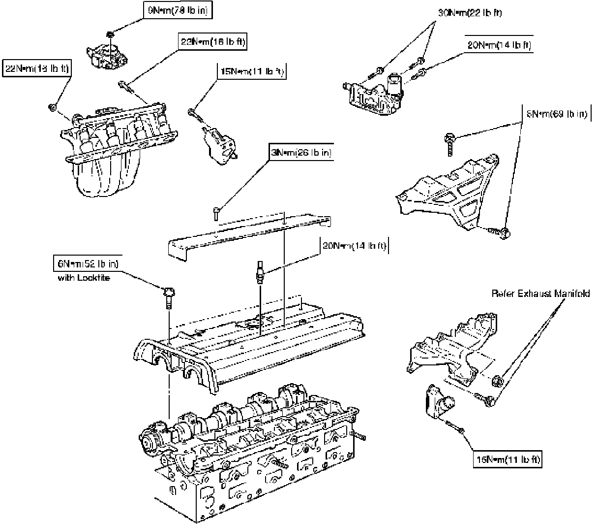 Spark Plug, Throttle Body, EGR Valve Adaptor Assembly, Bypass Housing Assembly, Thermostat Assembly, Inlet Manifold Assembly, Exhaust Manifold Assembly, Heat Shield, Ignition Cable Cover