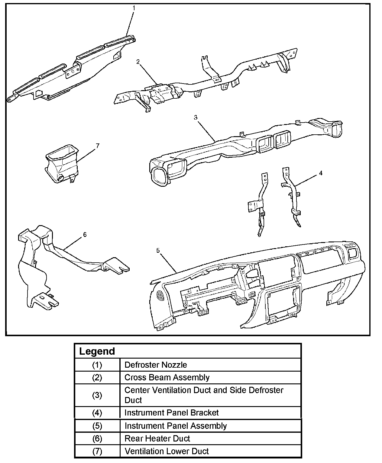 Rear Heat Duct, Defroster Nozzle, Ventilation Duct And Associated Parts: