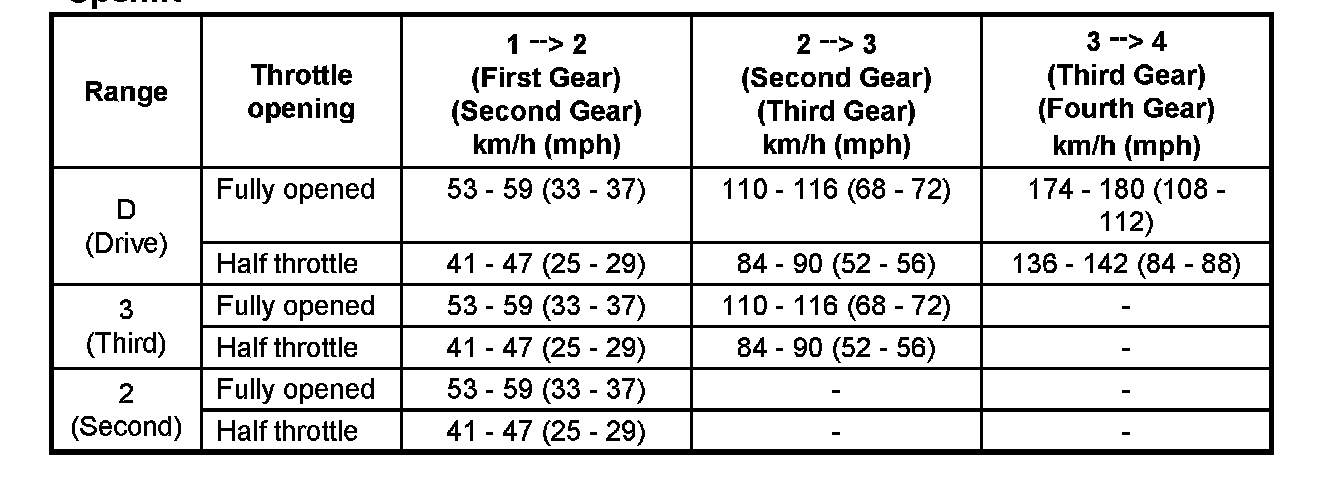 Shift Speed Chart