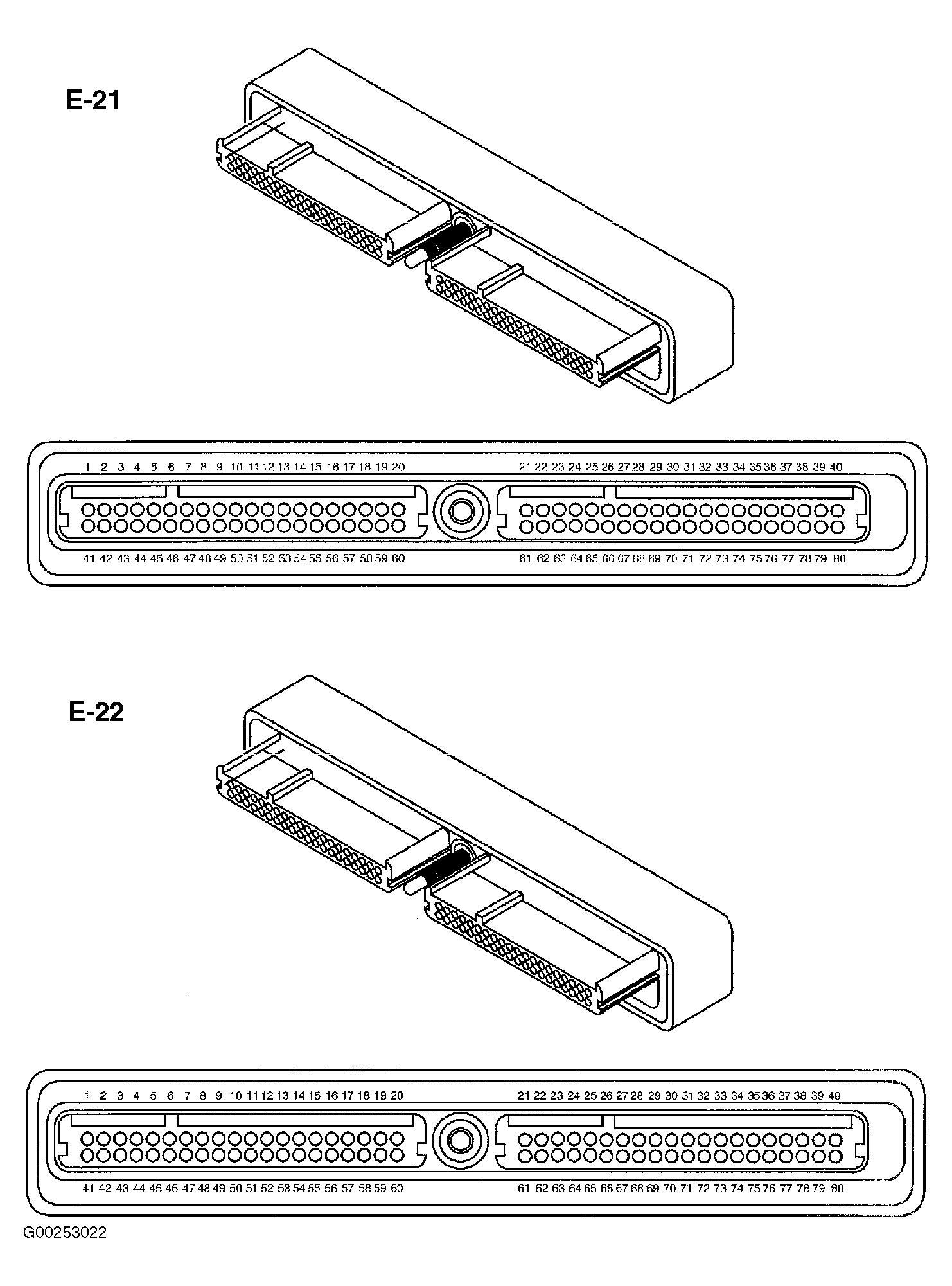4. Disconnect ECM 80-pin harness connectors E-21 (Blue) and E-22 (Red). See Fig 2 .