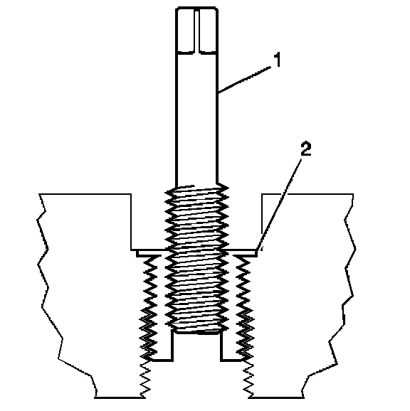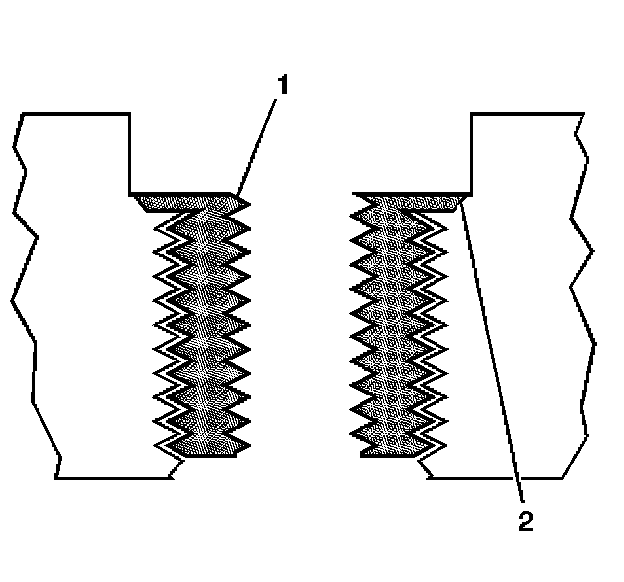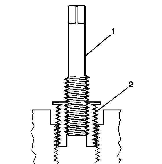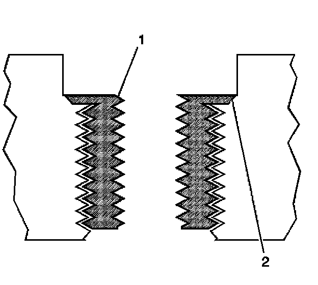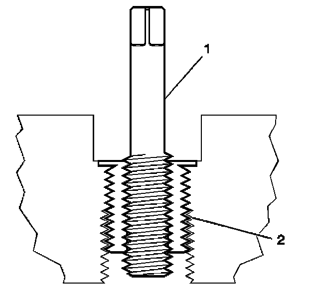 14. Inspect the insert (1) for proper installation (2) into the tapped hole.
