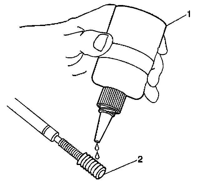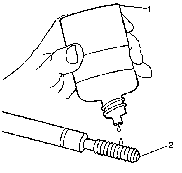 8. Lubricate the threads of the driver installation tool (2) with the driver oil (1) J 42385-110.