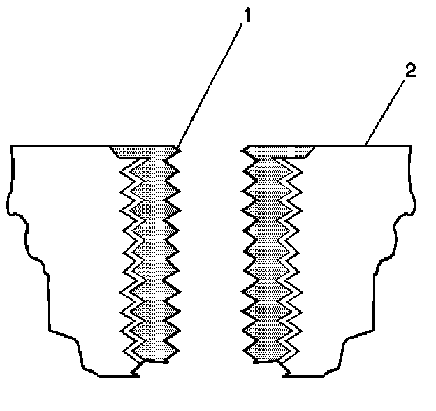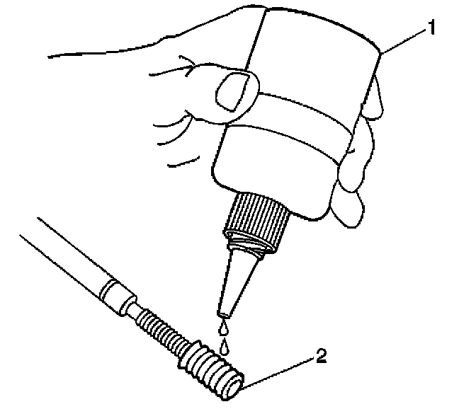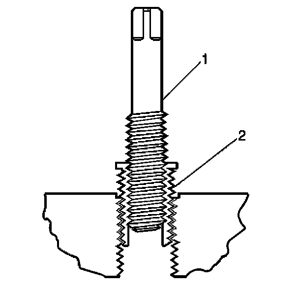 11. Apply threadlock J 42385-109 (1), or equivalent to the insert OD threads (2).