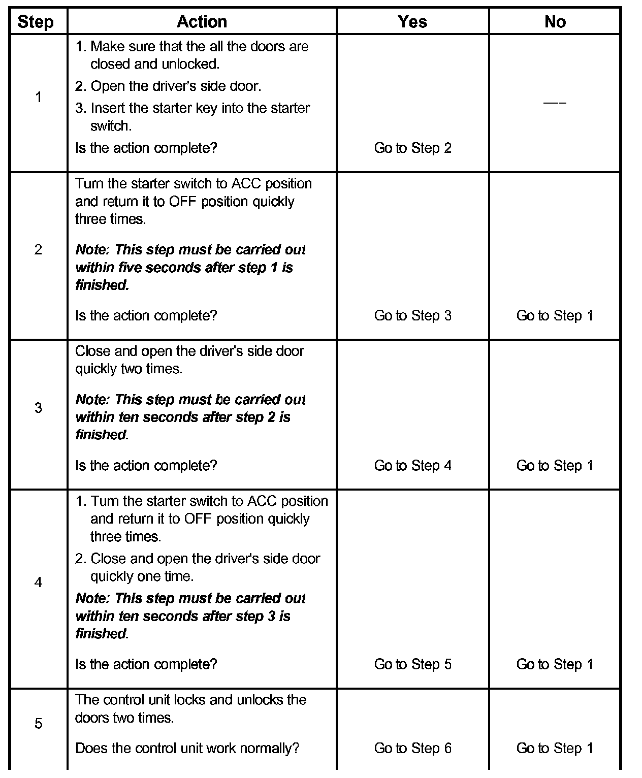 ID Code RegistrationThe following procedures are available to register keyless entry ID codes.