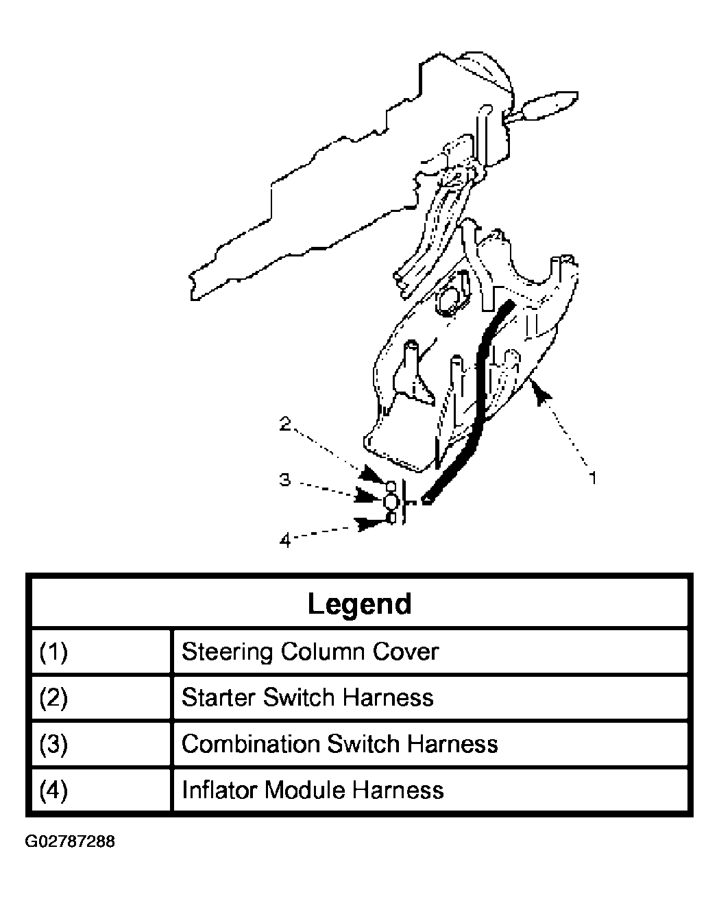 - When installing the steering column cover, be sure to route each wire harness as illustrated in Fig 2 so that the harnesses do not catch on any moving parts.
