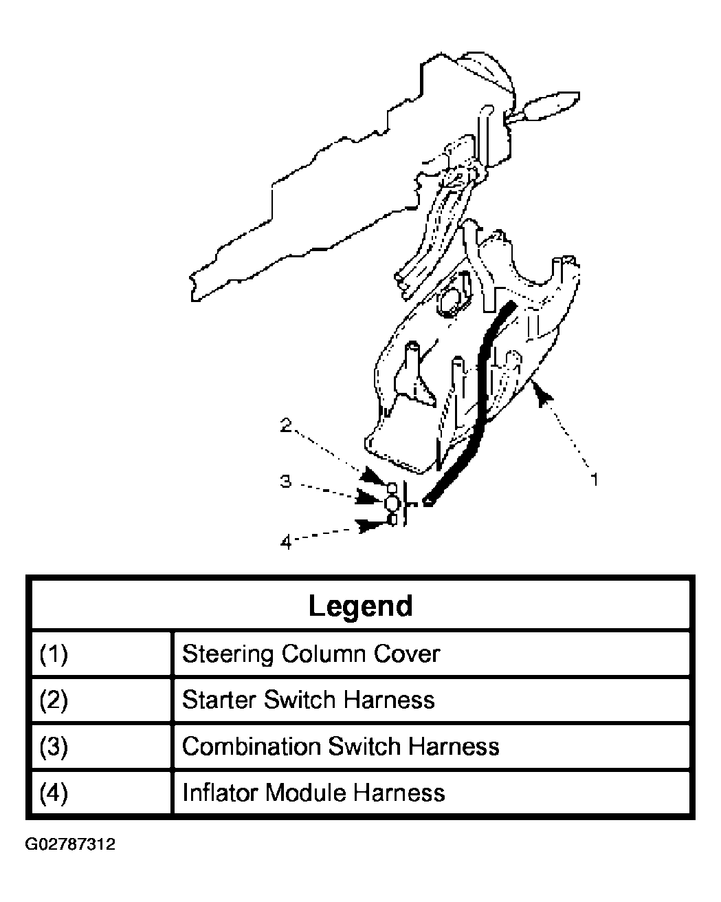 12. When installing the steering column cover, be sure to route each wire harness as seen in Fig 2 so that the harnesses do not catch any moving parts.