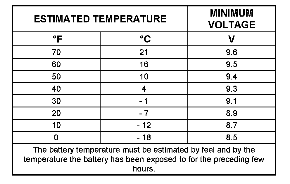 a. VOLTAGE DOES NOT DROP BELOW THE MINIMUM LISTED IN THE TABLE - The battery is good and should be returned to service.