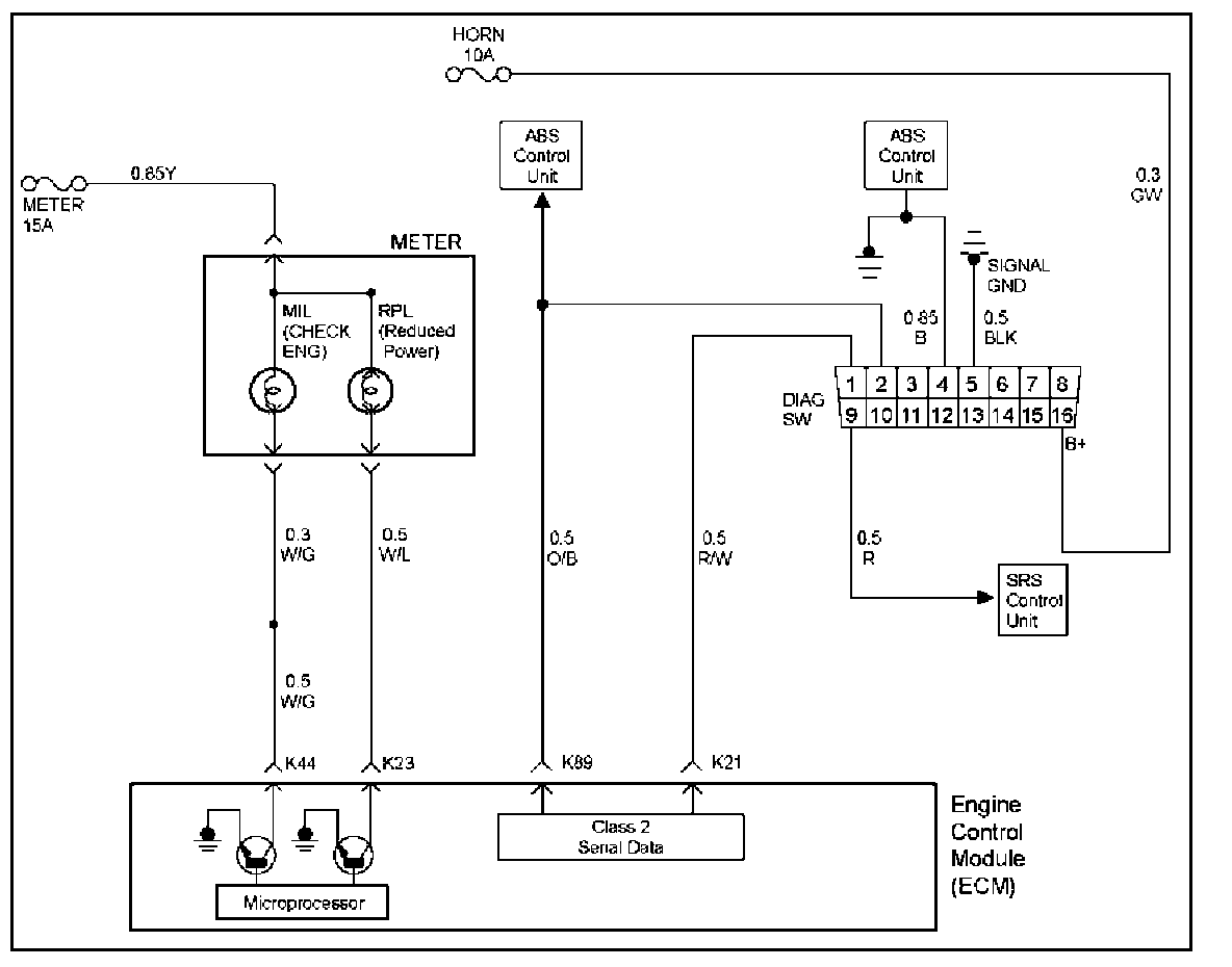 2. Checks the Class 2 data circuit and ensures that the ECM is able to transmit serial data.