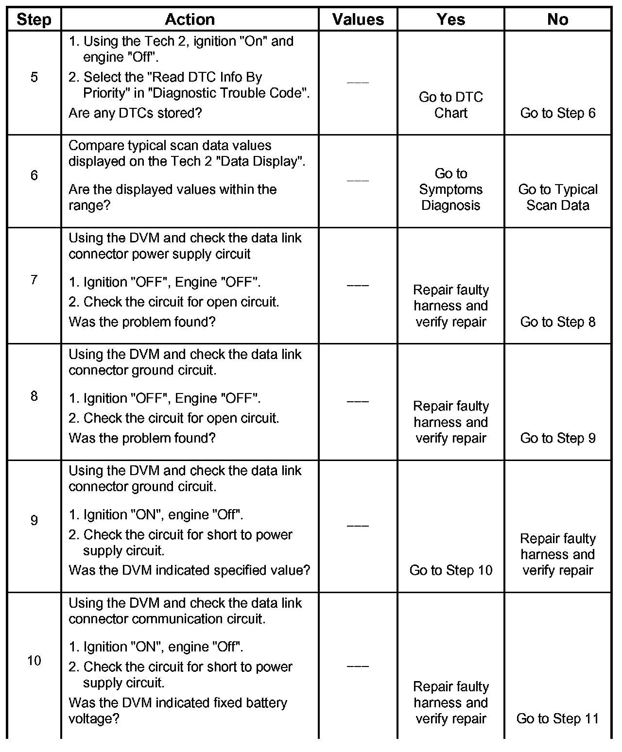 6. The Tech 2 parameters which is not within the typical range may help to isolate the area which is causing the problem.