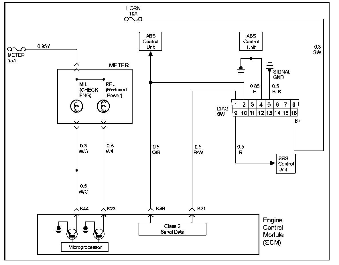 Check the Class 2 data communication system that the ECM is able to transmit serial data.