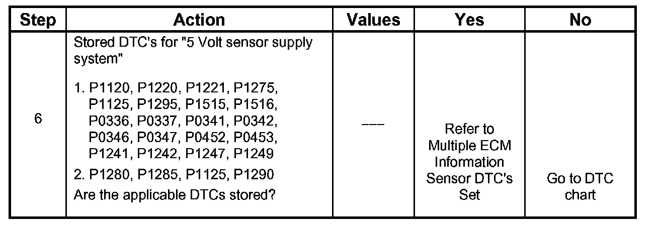6. Check the DTC's (for sensor 5 volts, supply circuit)