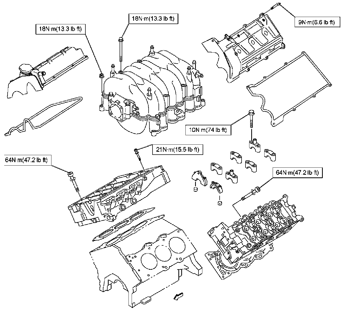 Install main bearing caps, oil gallery and crank case bolts in the order show, and tighten each bolt to the specified torque.