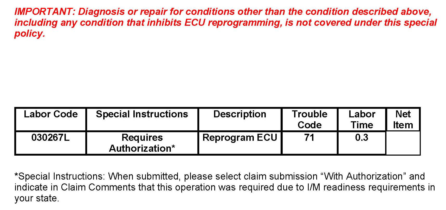 Special Policy adjustment - Evaporative Emissions (EVAP) System Inspection Maintenance (I/M)