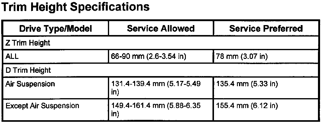 Trim Height Specifications