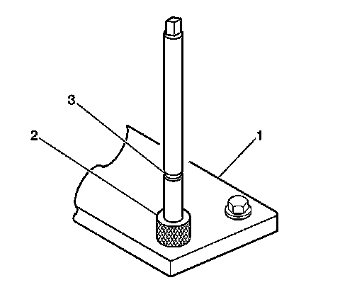 2. Install the fixture plate, bolt, and bushing onto the engine block.Position the fixture plate and bushing over the hole that is to be repaired.