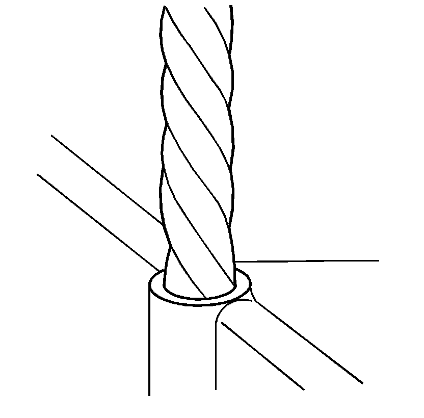 ^ During the drilling process, it is necessary to repeatedly remove the drill and clean chips from the hole and the flutes of the drill.
