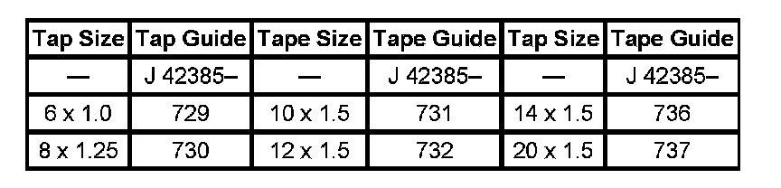 The tool kit J 42385-400 is designed for use with either a suitable tap wrench or drill motor. Limited access and larger hole repair may process better using a tap wrench. An extension J 43965 may also be necessary to drive the thread repair tooling dependent on access to the hole being repaired.