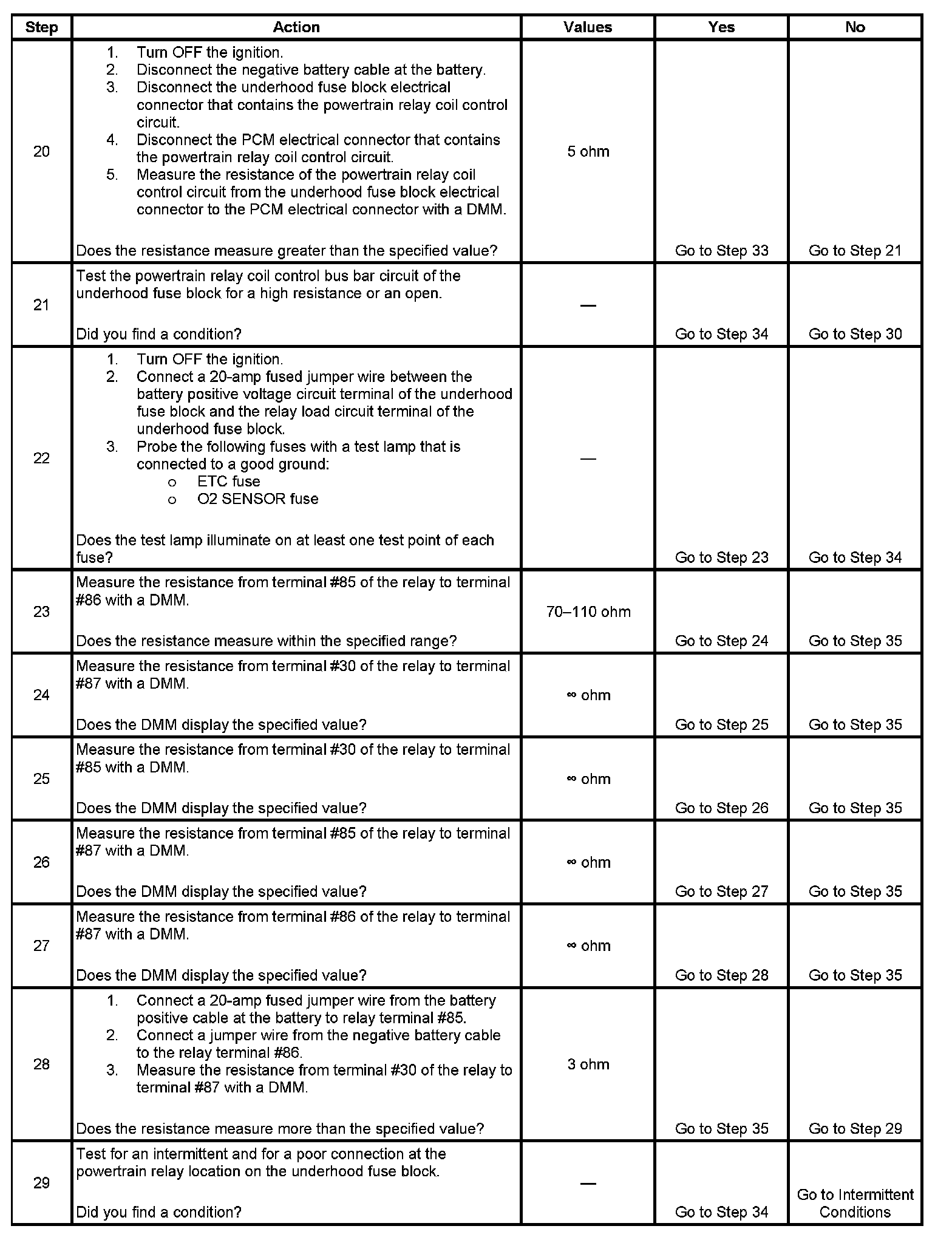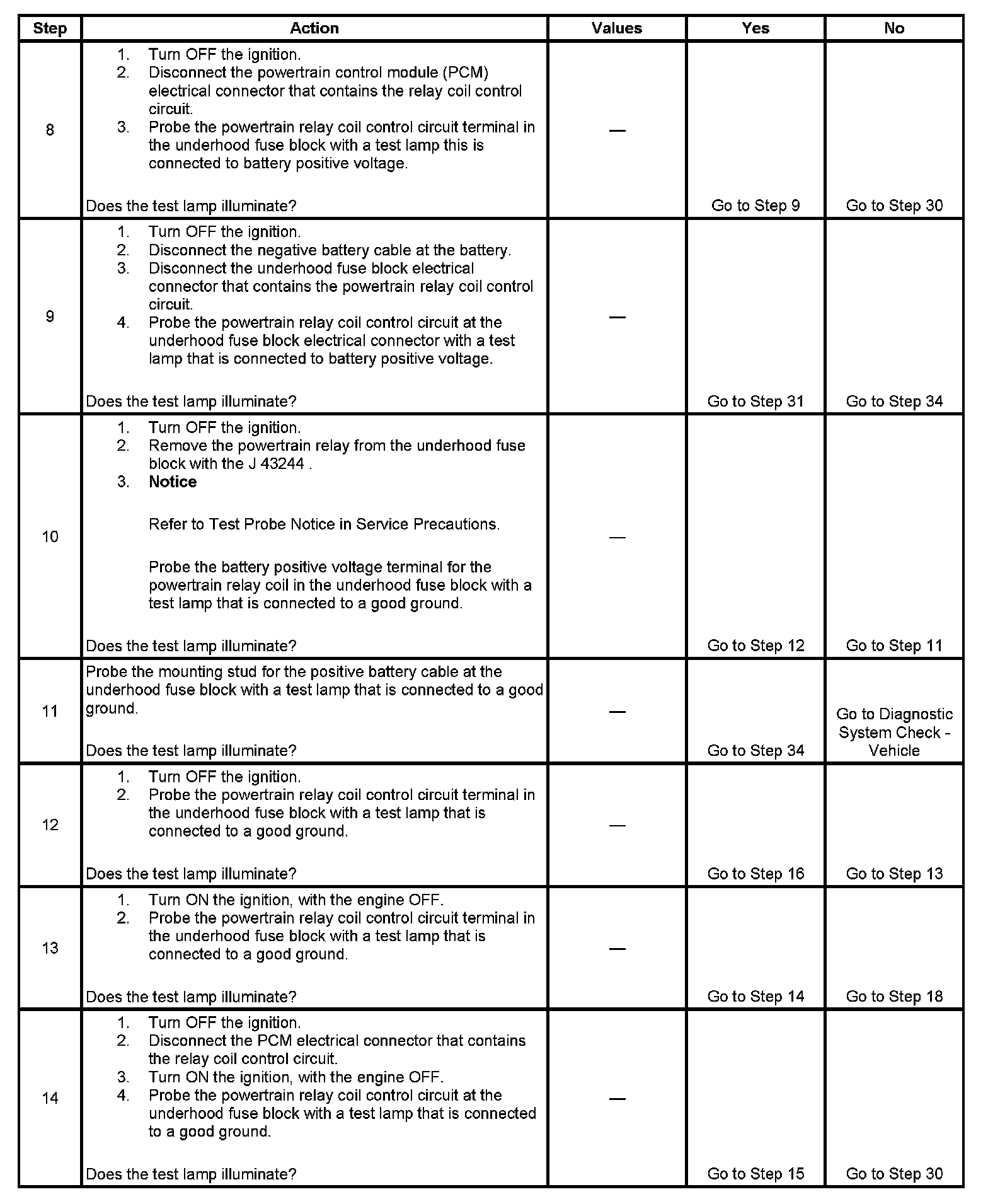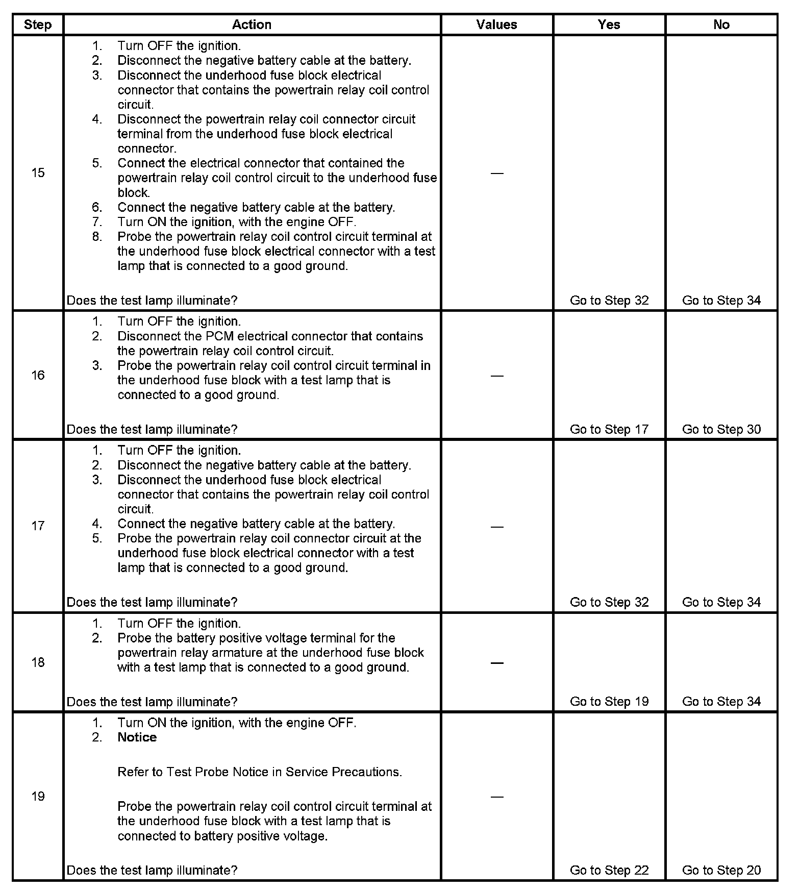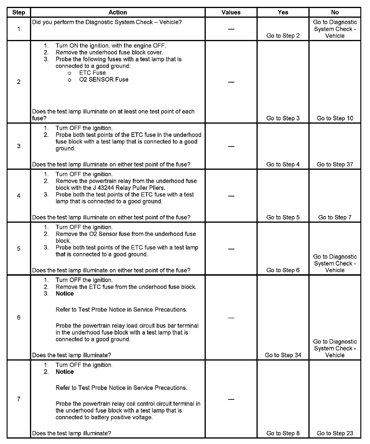 The powertrain relay system diagnosis table assumes that the vehicle battery if fully charged. Refer to Battery Inspection/Test (Non-HP2) in Starting and Charging. Battery Inspection/Test